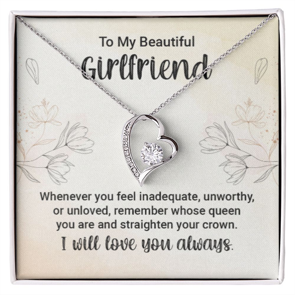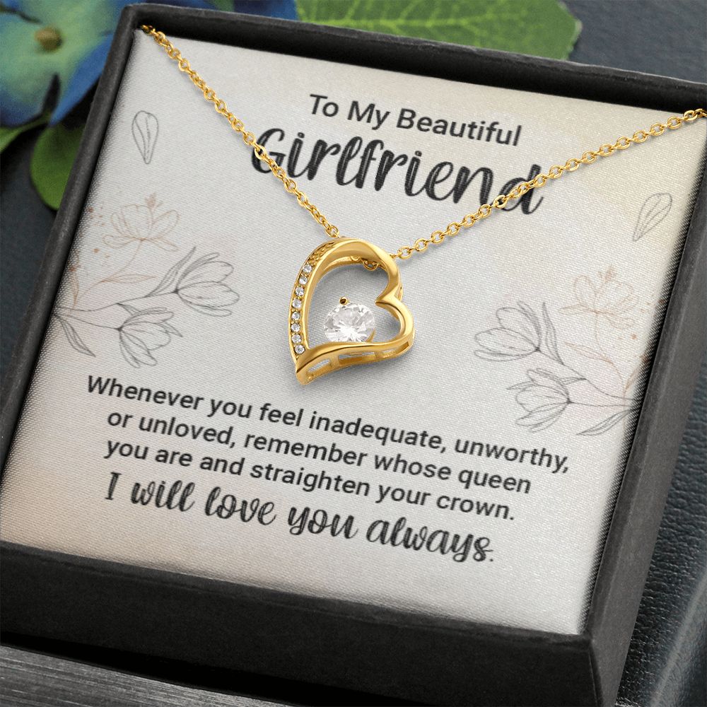 The dazzling Forever Love Necklace is sure to make her heart melt! This necklace features a stunning 6.5mm CZ crystal surrounded by a polished heart pendant embellished with smaller crystals to add extra sparkle and shine. Beautifully crafted with either a white gold or yellow gold finish, be sure to give her a classic gift she can enjoy everyday.