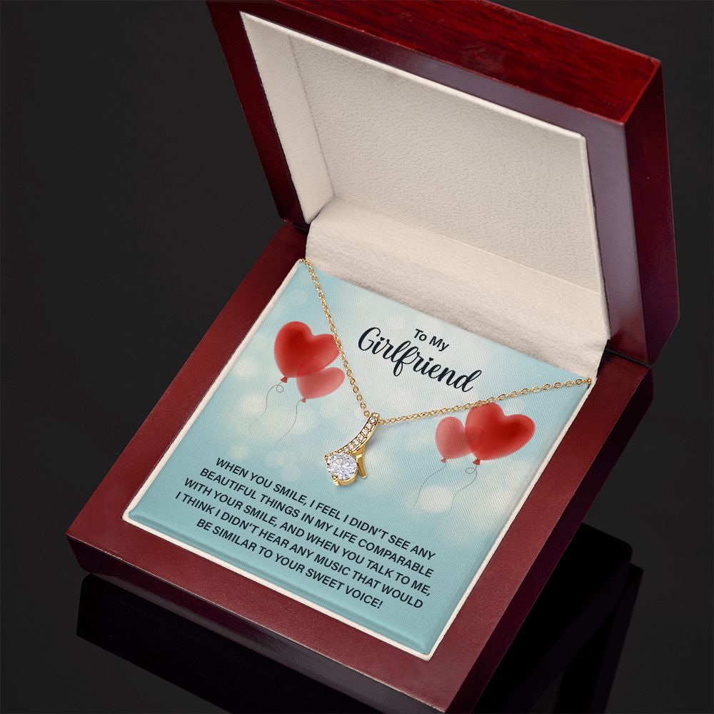Imagine her reaction when she opens this stunning gift! The Alluring Beauty necklace features a petite ribbon shaped pendant that is sure to dazzle your special someone. Whether it's a birthday or anniversary, make sure to get her a gift she will love for years to come.